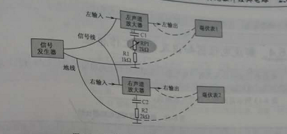 立體聲平衡調整方法:給左右聲道輸入適當?shù)南嗤笮〉臏y試信號(一般特定頻率的正弦信號,有信號發(fā)生器提供),如圖2所示,在左、右聲道輸出端分別街上毫伏表,調整平衡貼片可調電阻RP1,使兩個聲道輸出信號幅度大小相等。