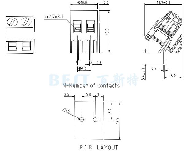 接線端子F34-2-5.0常應用于低壓電纜,電線接入電氣設備(通常是變壓器,箱,柜類)時的連接金具。